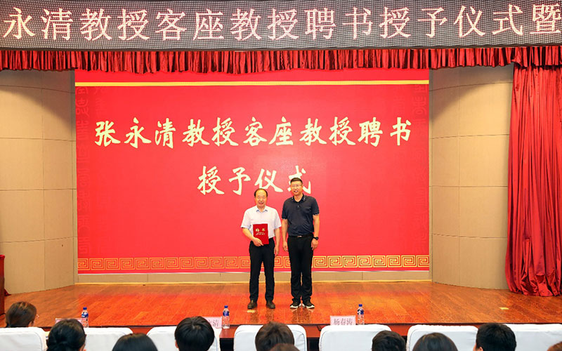 6月29日下午,我校在学术报告厅举办张永清教授客座教授聘书授予仪式暨学术报告会。校长杨春涛、副校长荆雪宁出席仪式,学校200余名师生代表参与活动,活动由科研处处长秦海洸主持。