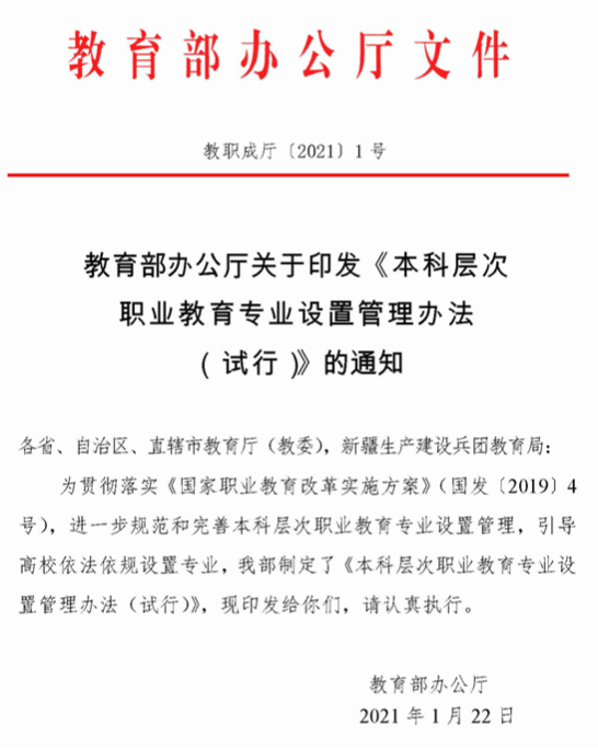 本科层次职业教育专业设置管理办法(试行)